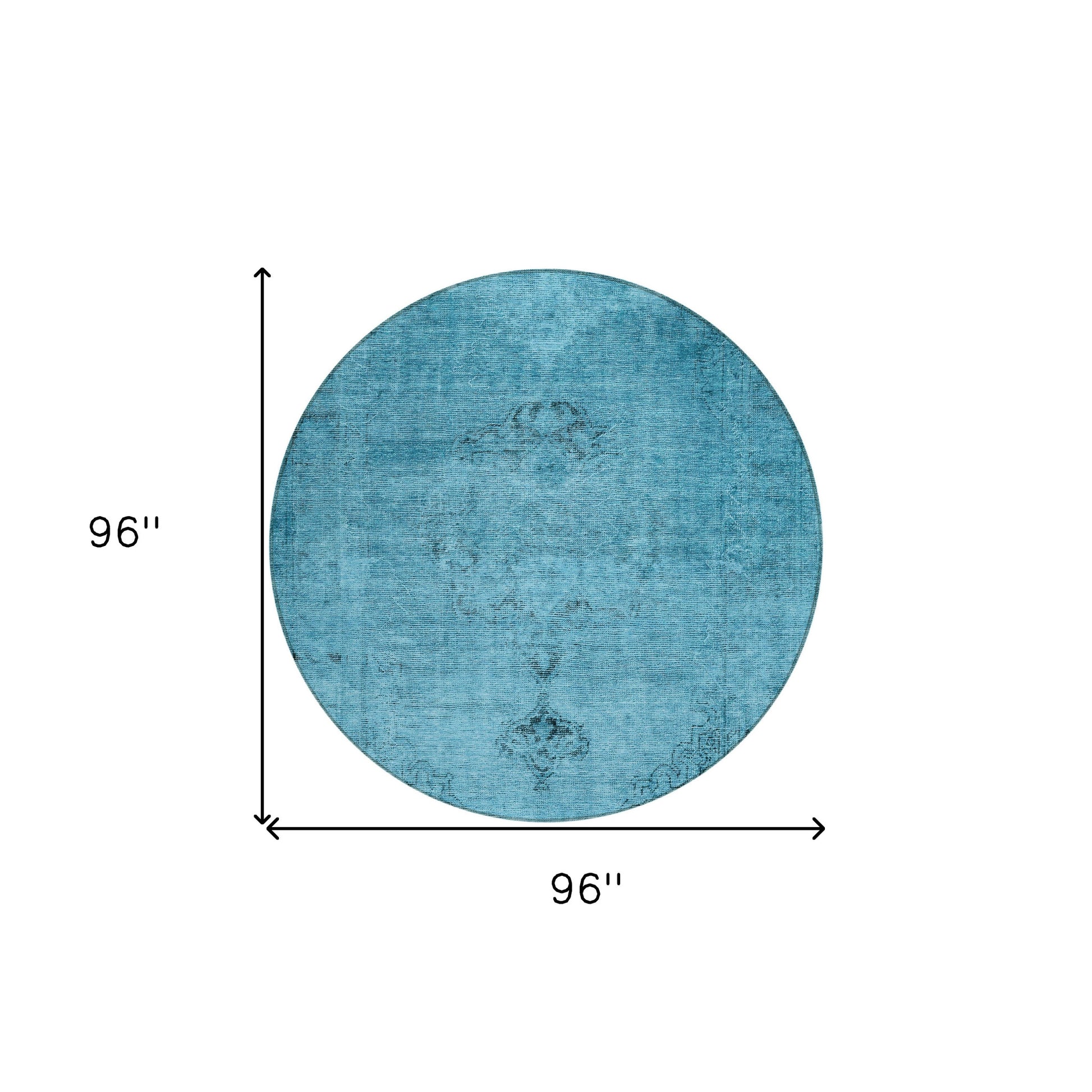 8' Denim Blue And Navy Blue Round Oriental Washable Indoor Outdoor Area Rug