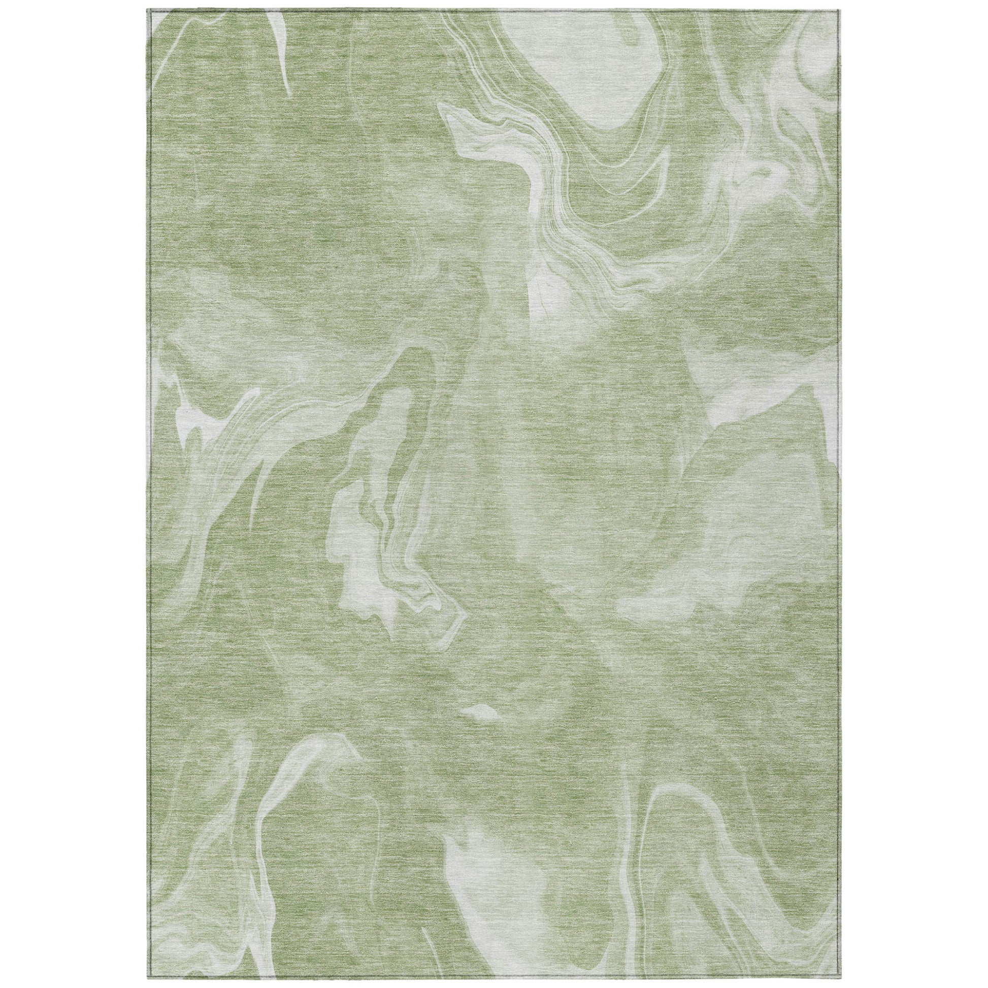 9' X 12' Artichoke Green Fern Green And Ivory Abstract Washable Indoor Outdoor Area Rug